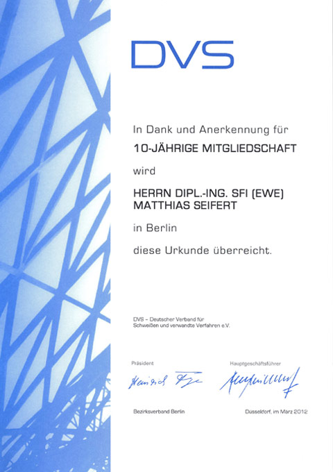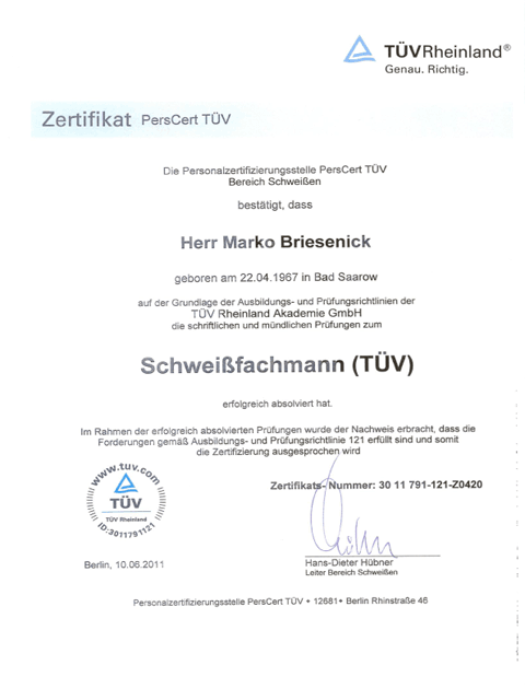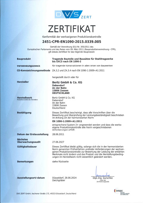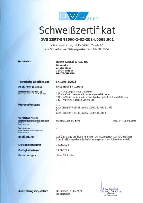 Zertifikat für Sandstrahlen und Korrosionsschutz